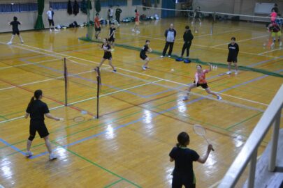 3月14日(土)、本校第一体育館においてバドミントンの強化練習が行われました。今回の練習には、松友 美佐紀 さん(BIPROGY)と、渡部 大 さん(JR北海道・本校OB)、加藤 太基 さん(JR北海道)、木野 舜悟 さん(JR北海道)の計4名が来校し、生徒たちに指導してくださいました。練習は15時から17時まで行われました。